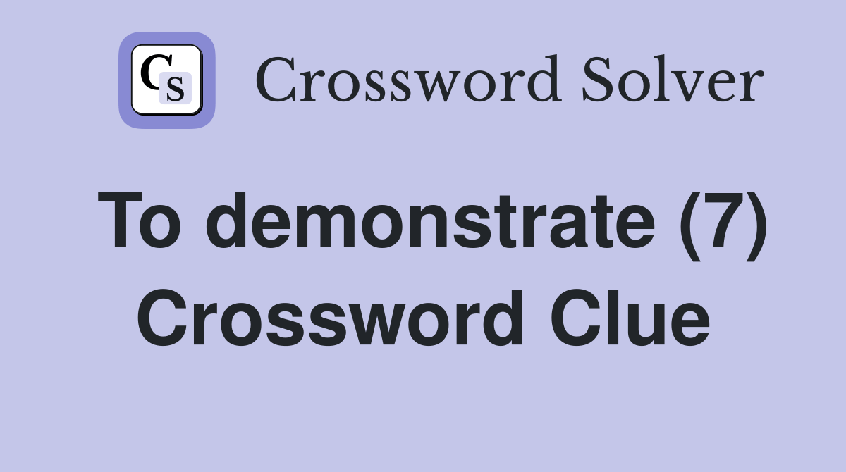 To demonstrate (7) Crossword Clue Answers Crossword Solver