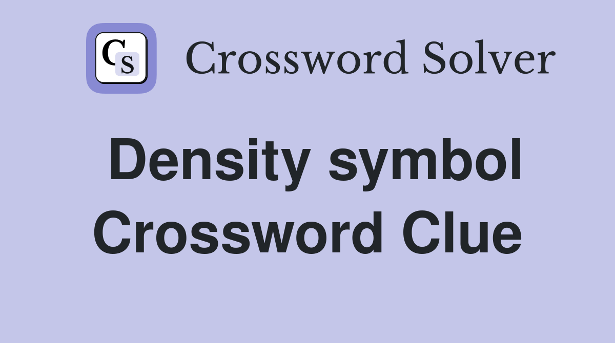 Web Find The Answer To The Crossword Puzzle Clue Density Symbol With 3 To 6 Letters.