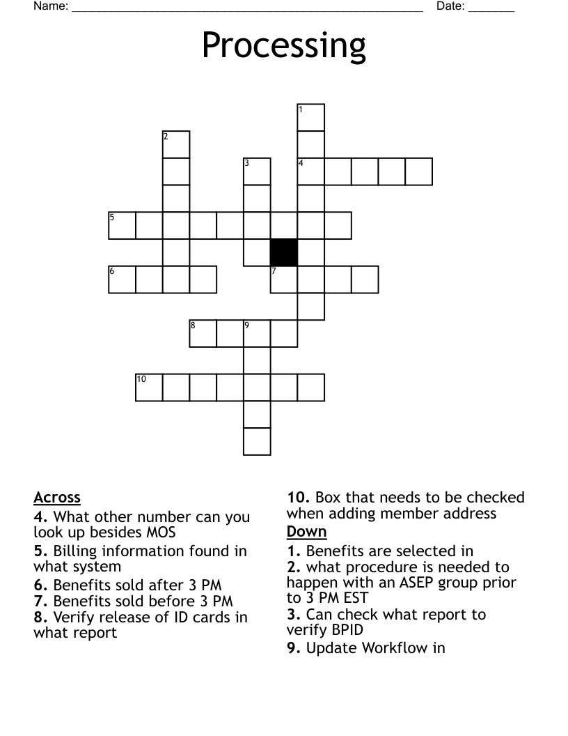 Processing Crossword Puzzle Crossword Puzzle
