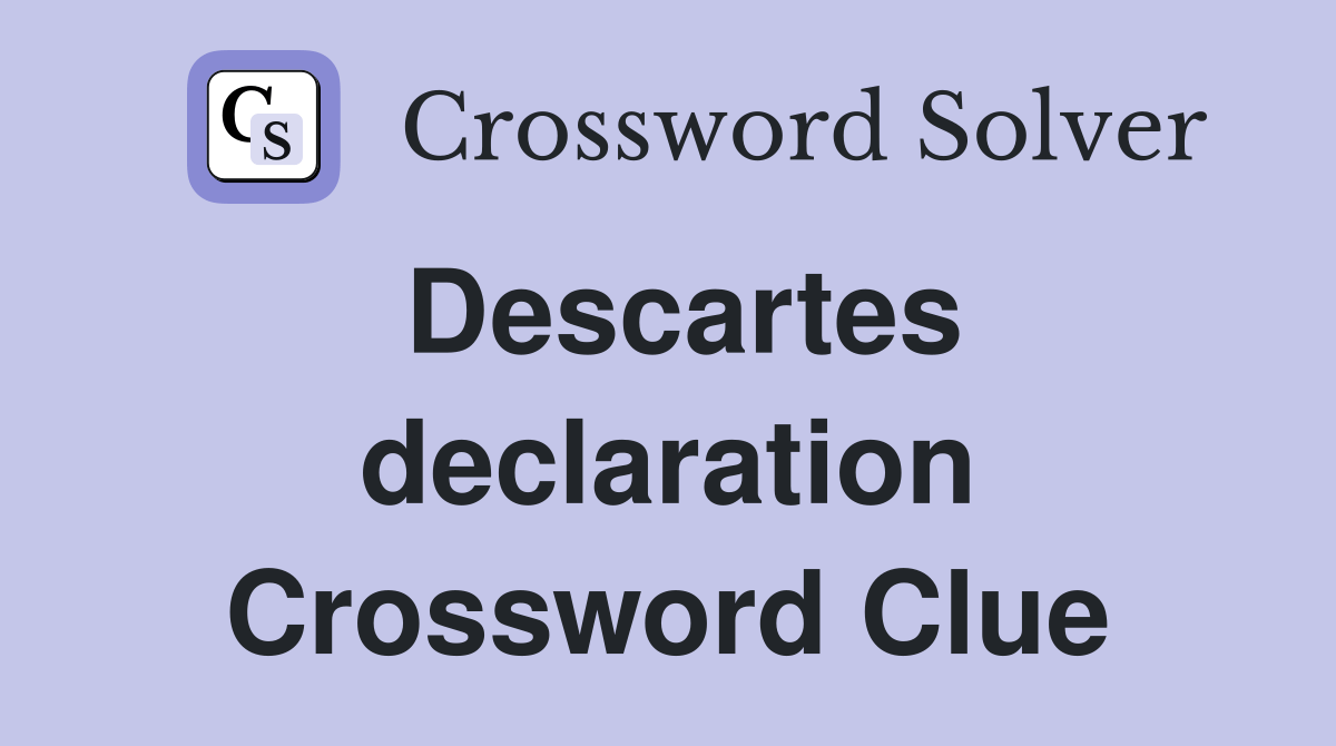 Web the crossword solver found 30 answers to desccartes declaration, 10 letters crossword clue. Web the crossword solver found 30 answers to descartes declaration, 13 letters crossword clue. You can easily improve your search. There are related clues (shown below). Web this clue was last seen on newsday crossword september 15 2023 answers in case the clue doesn’t fit or.