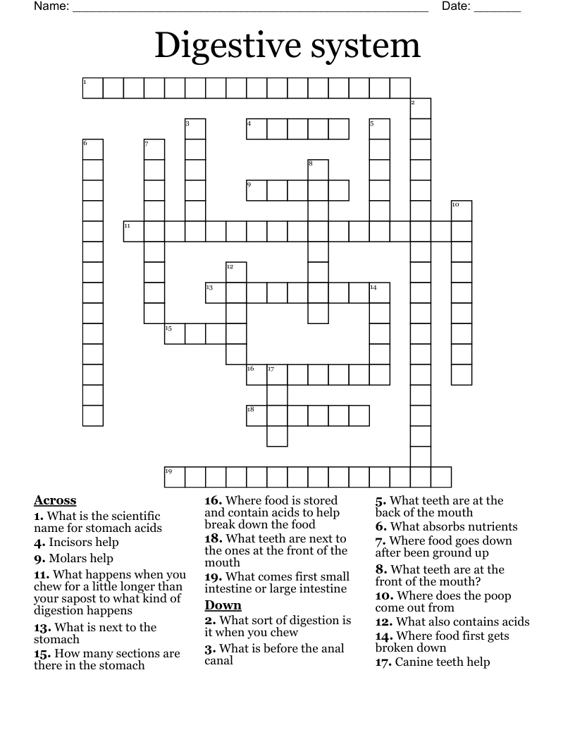 Web find the answers to a crossword puzzle about the human digestive system, including terms like stomach,. With our crossword solver search engine you have access to. Search for crossword clues found in the daily celebrity, ny times,.