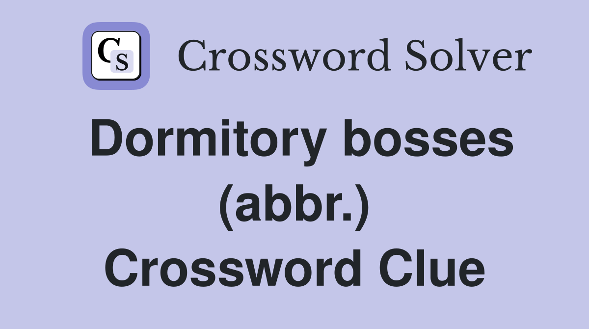Dormitory bosses (abbr.) Crossword Clue Answers Crossword Solver