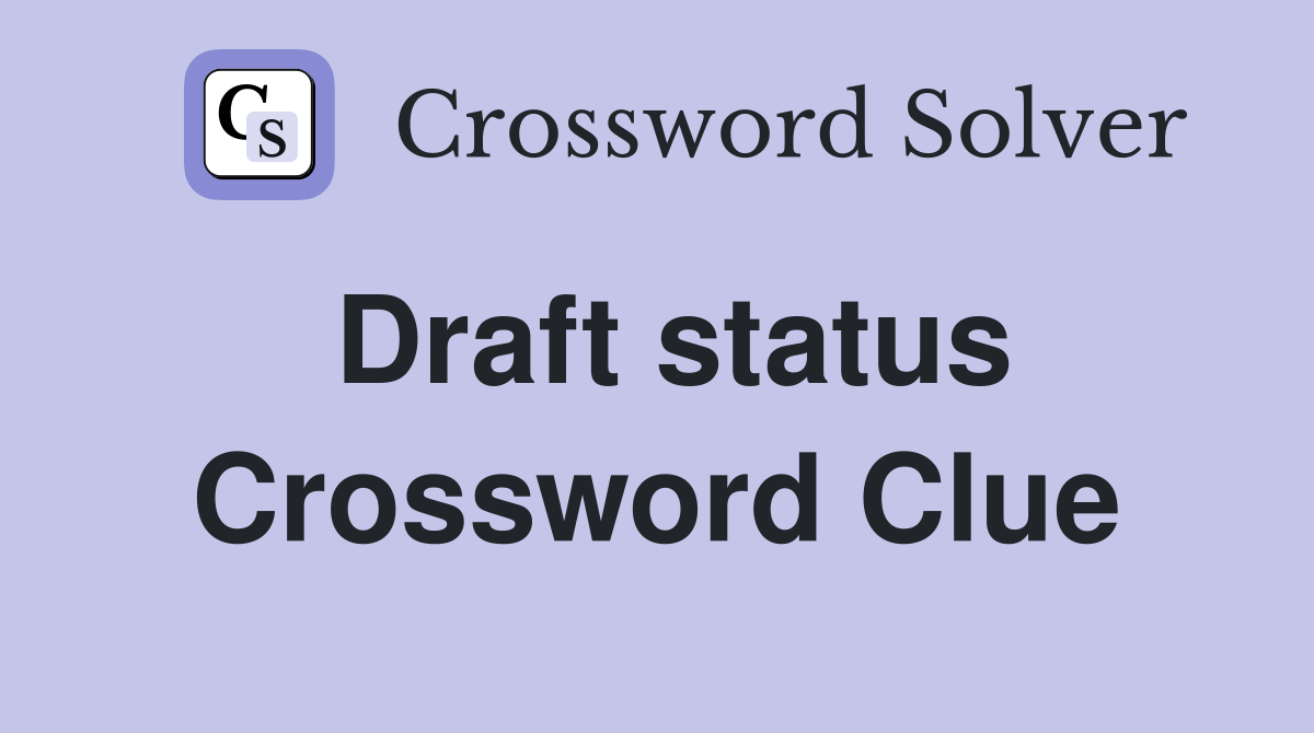 We have found 40 possible. Web here is the answer for the crossword clue draft status last seen in eugene sheffer puzzle. Web find the solution for the crossword clue draft status in the new york times puzzle. The crossword solver finds answers to. See the related clues, possible answers and recent.