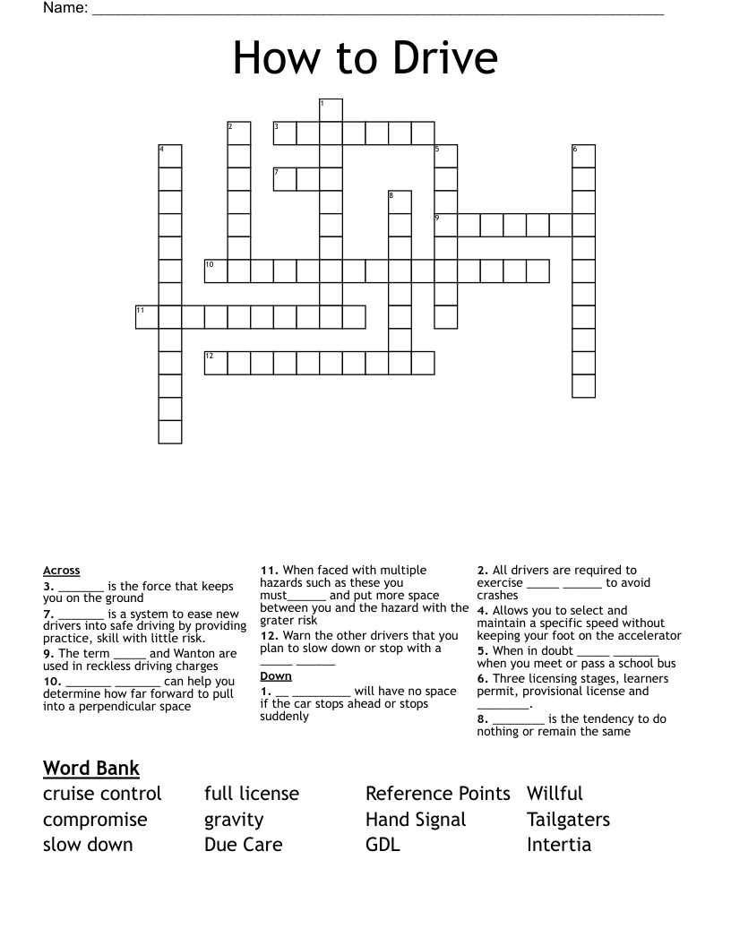 drive right crossword puzzle WordMint