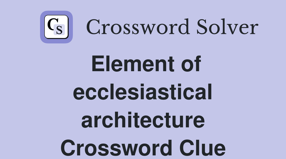 Element of ecclesiastical architecture Crossword Clue Answers Crossword Solver