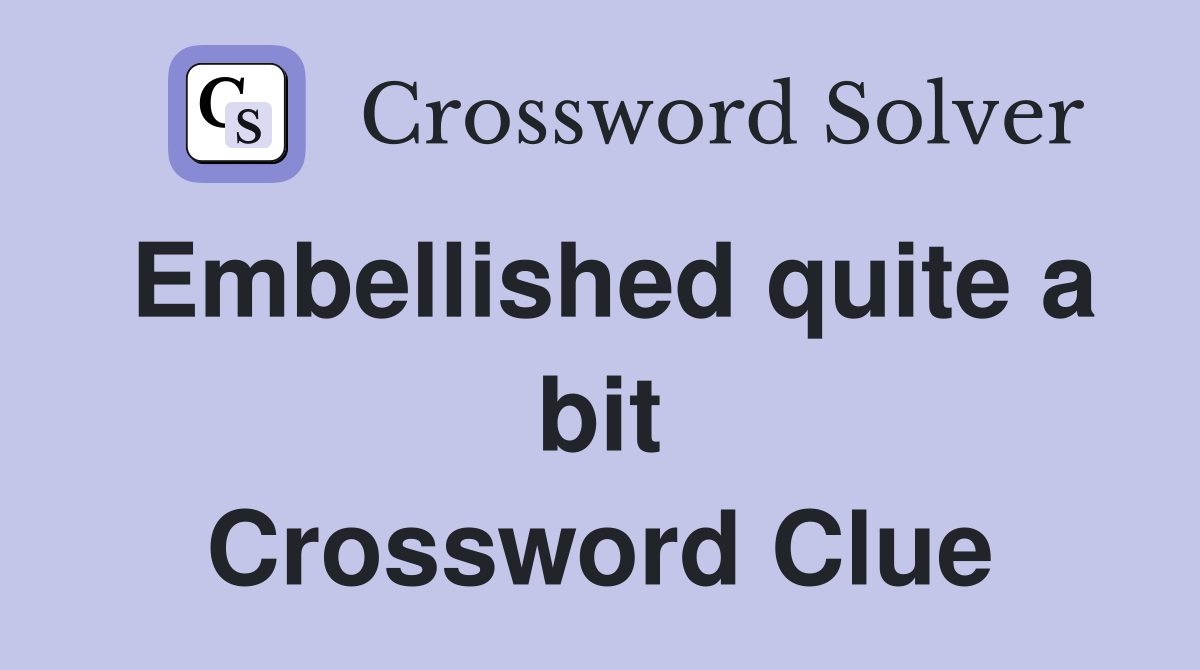 Web here is the answer for the crossword clue embellished quite a bit last seen in newsday puzzle. Web see answer for embellished quite a bit crossword clue newsday which will help you find solution. Web answers for embellished quite a bit crossword clue. The crossword solver finds answers. Embellished quite a bit is a crossword puzzle clue that we.