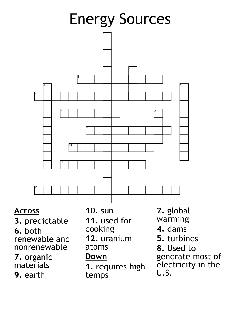 Energy and Source Crossword Puzzle