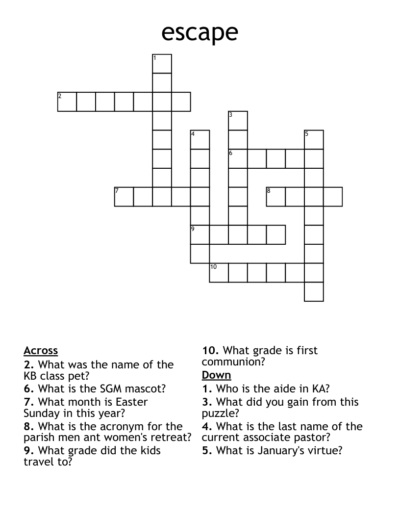 Escape Crossword Clue - The crossword solver finds answers to classic. Web find 31 answers for the crossword clue escape, ranging from 3 to 13 letters. Web here is the answer for the crossword clue escape last seen in mirror quick puzzle. Web find synonyms, anagrams and definitions of escape for crossword puzzles. Web find out the possible solutions for the crossword clue escape, which has been used over 20 times in various puzzles. Today's crossword puzzle clue is a quick one: We will try to find the right answer to this particular crossword. Also get synonyms for escape, such as avoid,. We have found 41 possible answers for this. See 131 solutions for escape of different lengths.