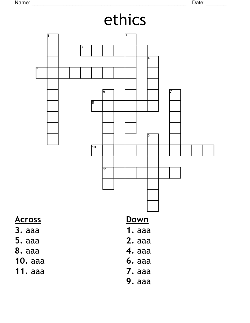 Ethics Crossword puzzle WordMint
