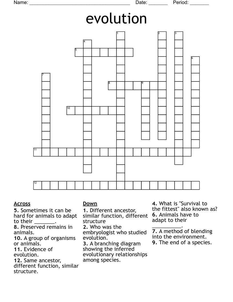 Evolution Crossword Puzzle Answer Sheet Crystal Wright's Crossword Puzzles