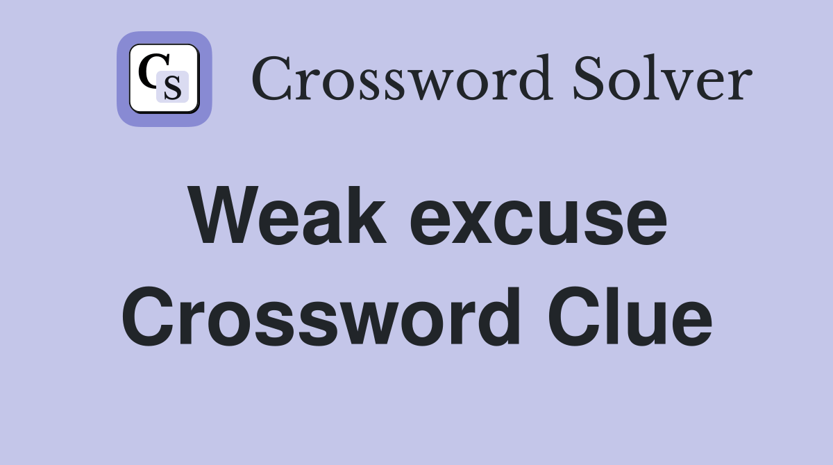 We have found 40 possible answers for this. Crossword clue here is the answer for the crossword clue excuse. Web find out the possible solutions for the crossword clue excuse from various sources and publications. Web here is the answer for the crossword clue excuse last seen in telegraph quick puzzle.