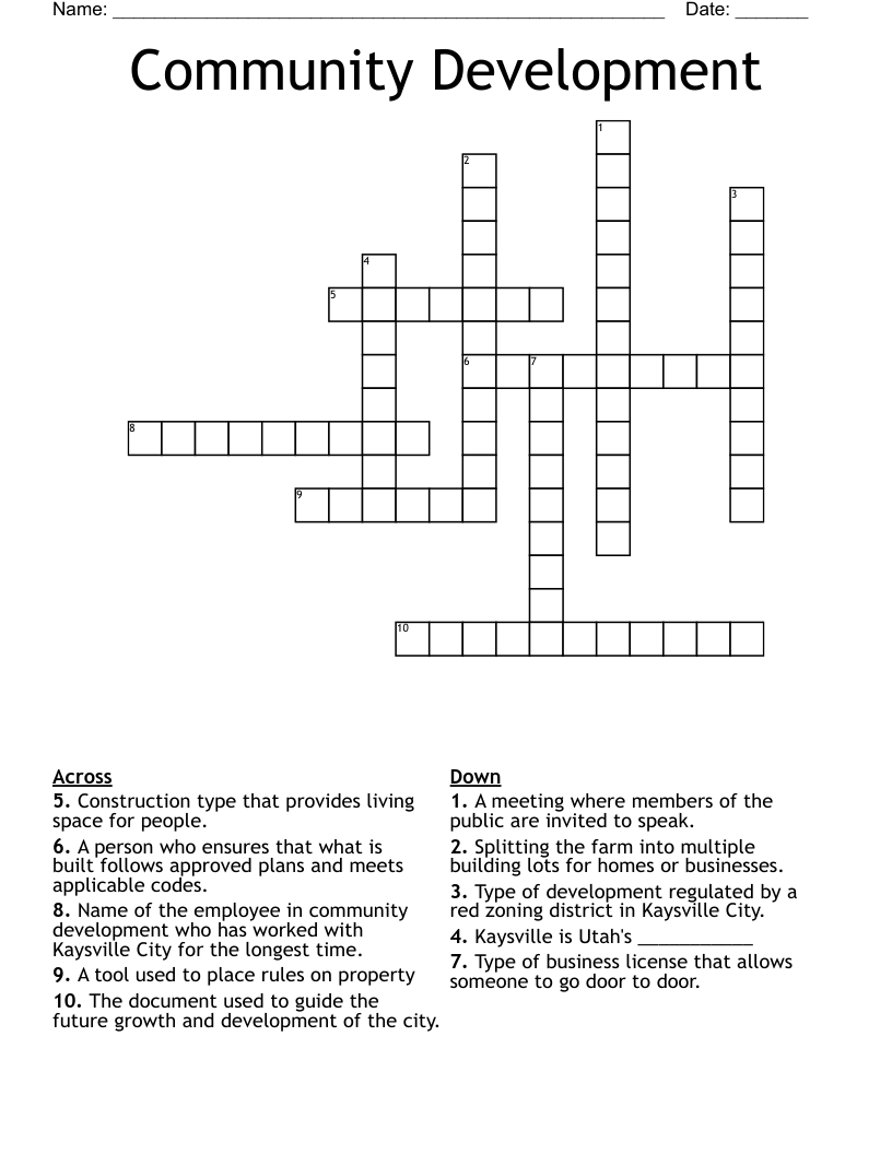 Community Development Crossword WordMint