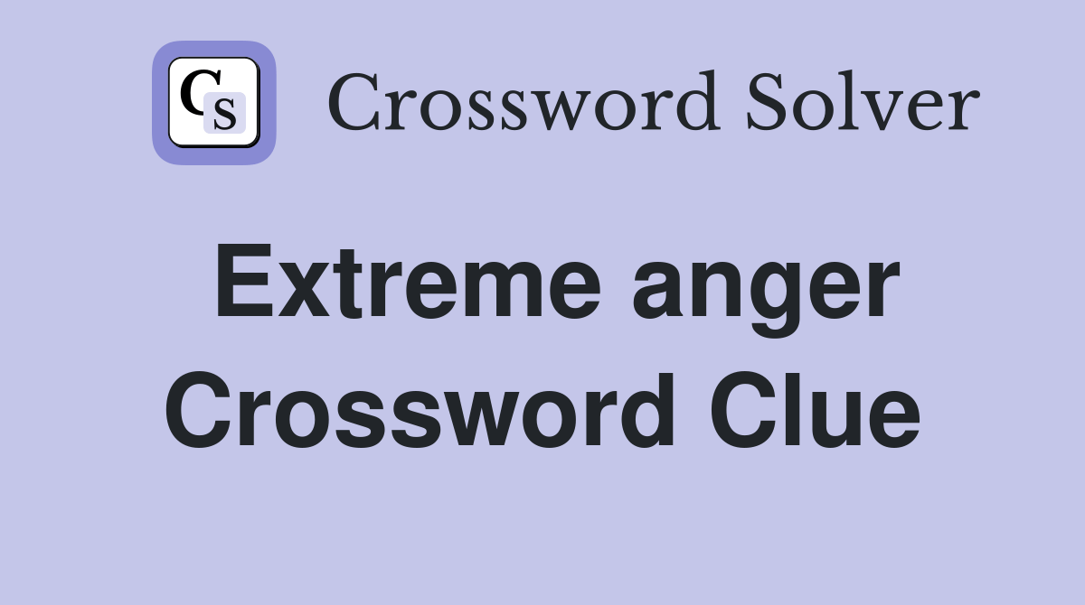 Web here is the answer for the crossword clue extreme anger last seen in newsday puzzle. Web based on our findings the most likely answer to the extreme anger crossword clue is: Below is a full list. The crossword solver finds answers to.