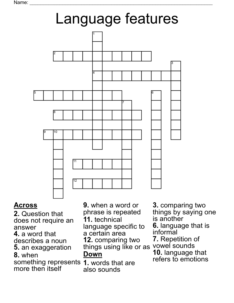Language Features Crossword WordMint