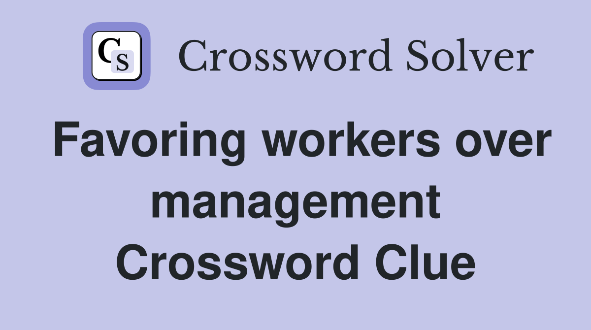 Favoring workers over management Crossword Clue Answers Crossword Solver