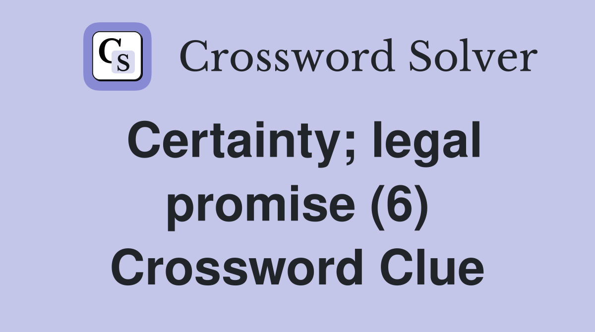 Certainty; legal promise (6) Crossword Clue Answers Crossword Solver