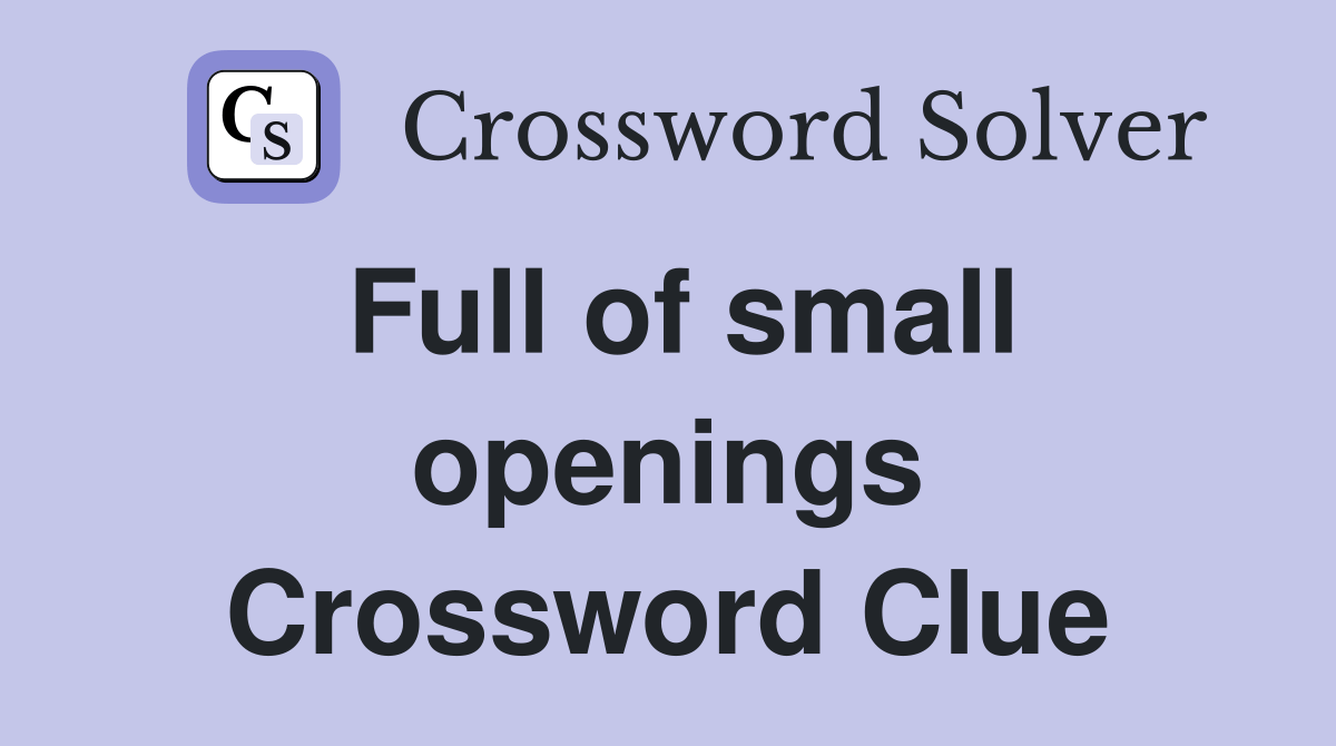 Web here is the answer for the crossword clue small openings last seen in la times daily puzzle. The crossword solver finds answers. Web small opening is a crossword puzzle clue that we have spotted over 20 times. Web the crossword solver found 30 answers to full of small openings 6, 6 letters crossword clue. While searching our database we.