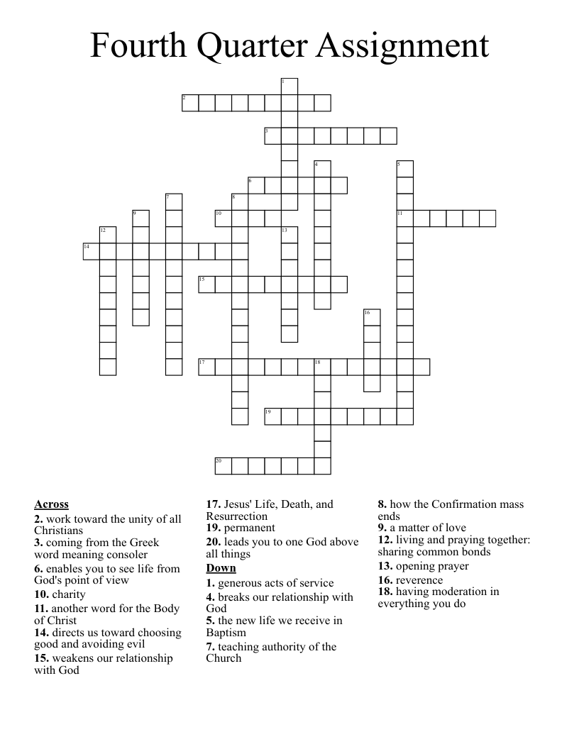 Fourth Quarter Assignment Crossword WordMint