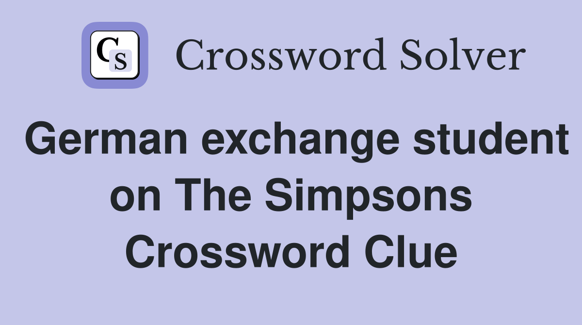 Web the crossword solver found 30 answers to german exchange student on the simpsons, 4 letters crossword clue. The top solutions are determined by popularity, ratings and. Web for the word puzzle clue of german exchange student on the simpsons, the sporcle puzzle library found the following results. Web potential answers for german exchange student on the simpsons. Web here.