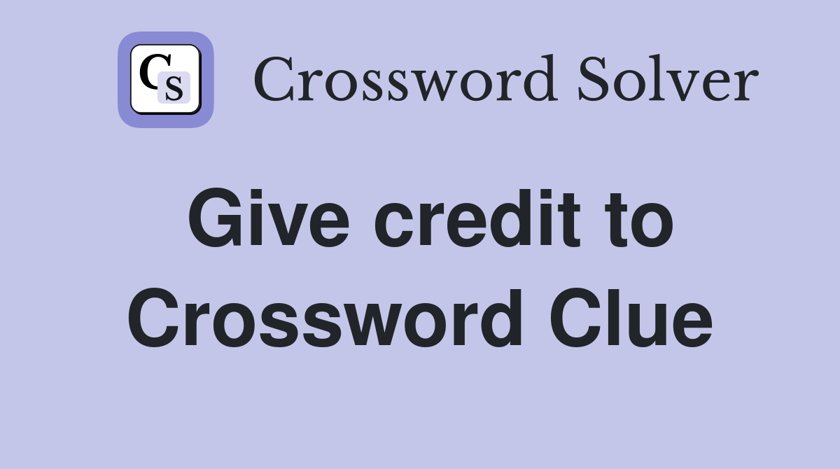 Web Find Out The Answer To The Crossword Puzzle Clue Give Credit To, Which Has Been Used 7 Times In Different Puzzles.