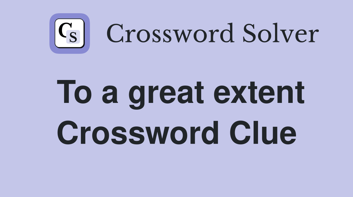 We have found 40 possible. Web here is the answer for the crossword clue to the greatest extent last seen in new york times puzzle. Web the crossword solver found 30 answers to greatest extent, 6 letters crossword clue. Web while searching our database we found 1 possible solution for the: Web here is the answer for the crossword clue.
