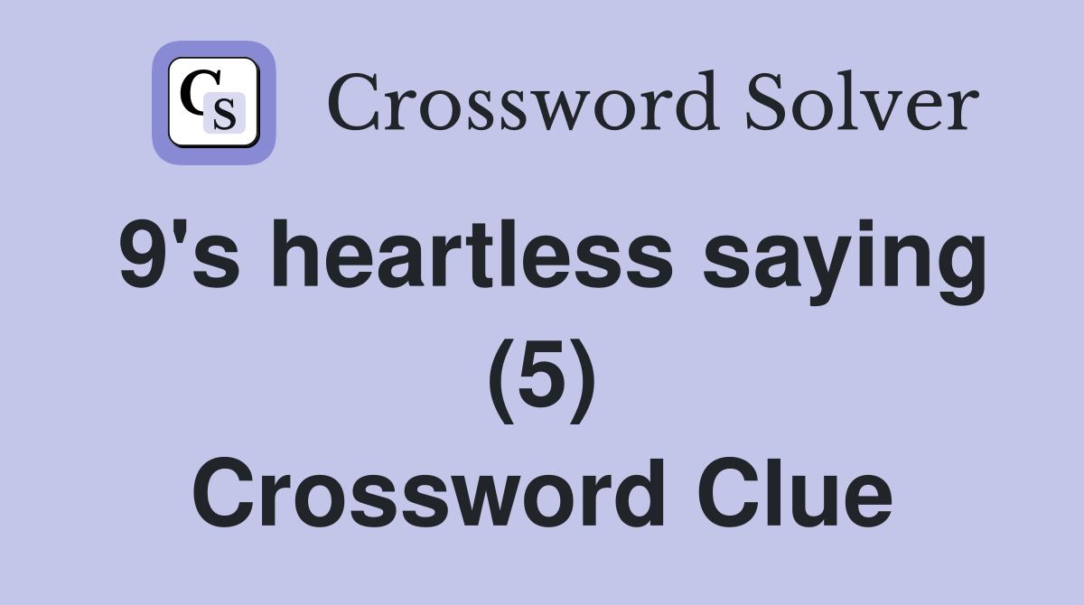 9's heartless saying (5) Crossword Clue Answers Crossword Solver
