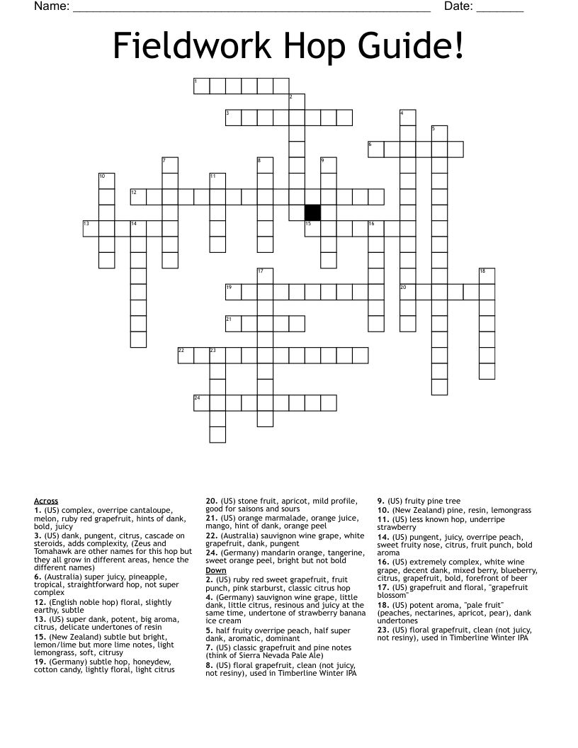 Fieldwork Hop Guide! Crossword WordMint