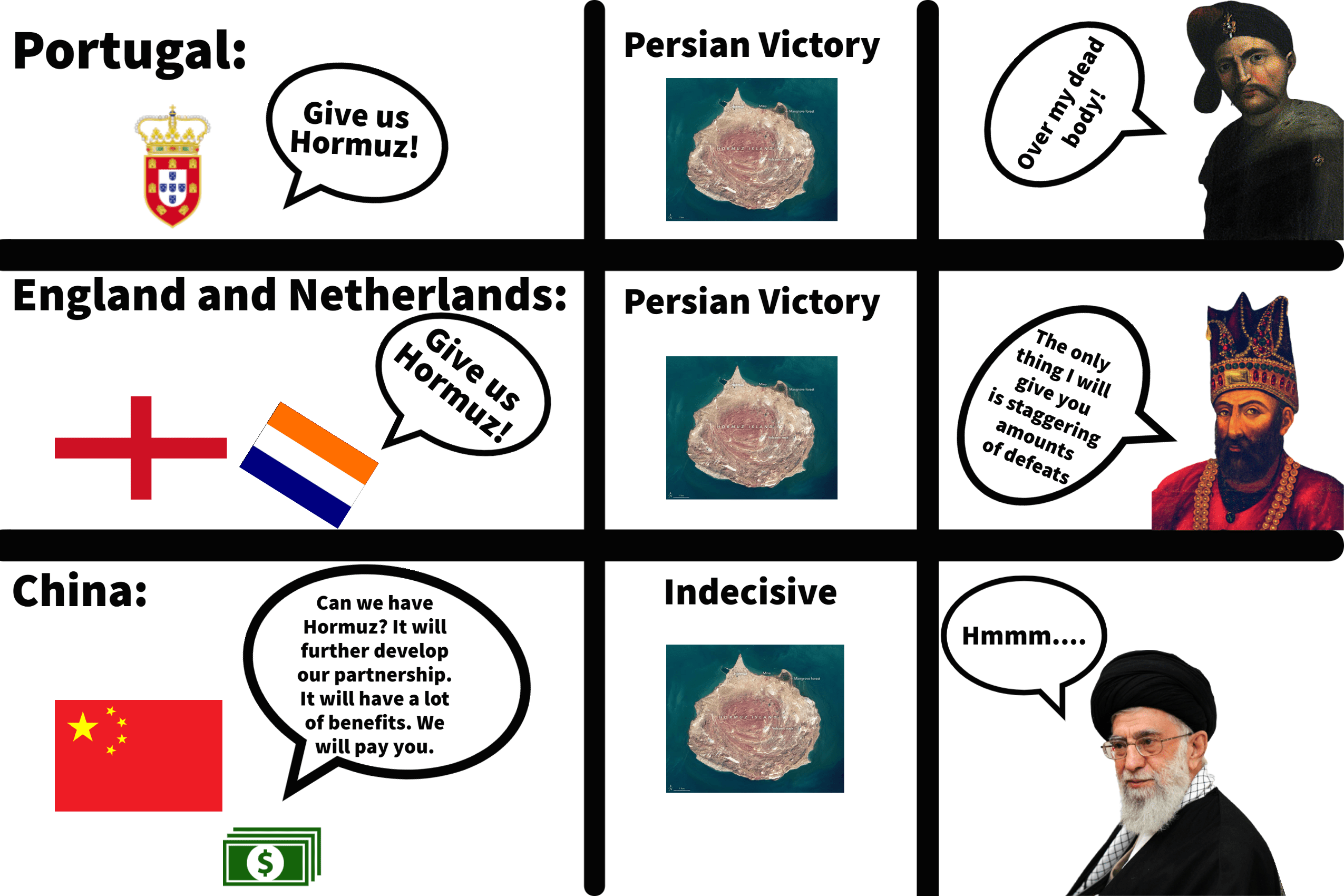 The history of Hormuz (Portugal did rule it, but Hormuz is closer to Persia and influenced by