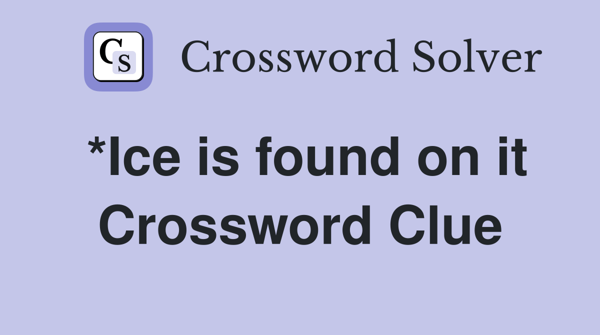 *Ice is found on it Crossword Clue Answers Crossword Solver