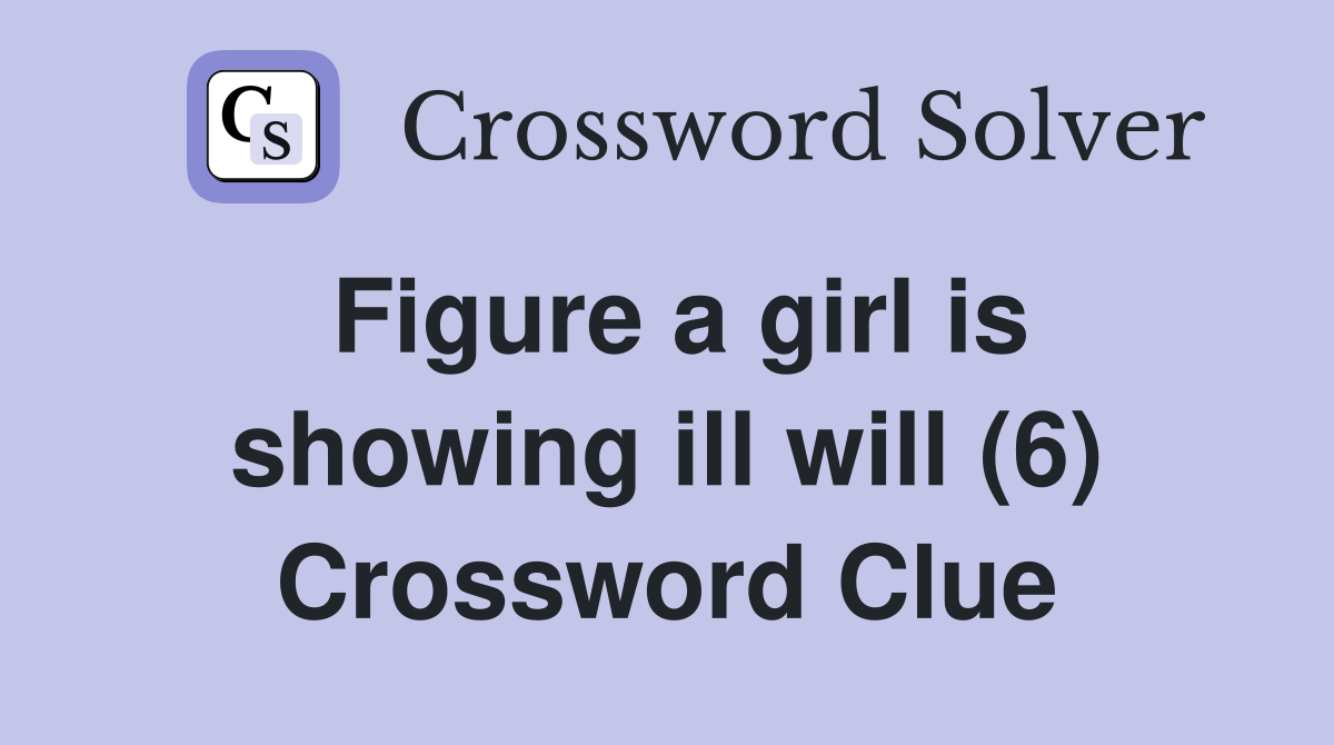 Figure a girl is showing ill will (6) Crossword Clue Answers Crossword Solver
