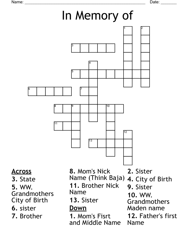 Web the crossword clue in memory of. It was last seen in the la times quick crossword. The top solutions are determined by popularity, ratings and. Web the crossword solver found 30 answers to in memory of ___ poem e.g., 4 letters crossword clue.