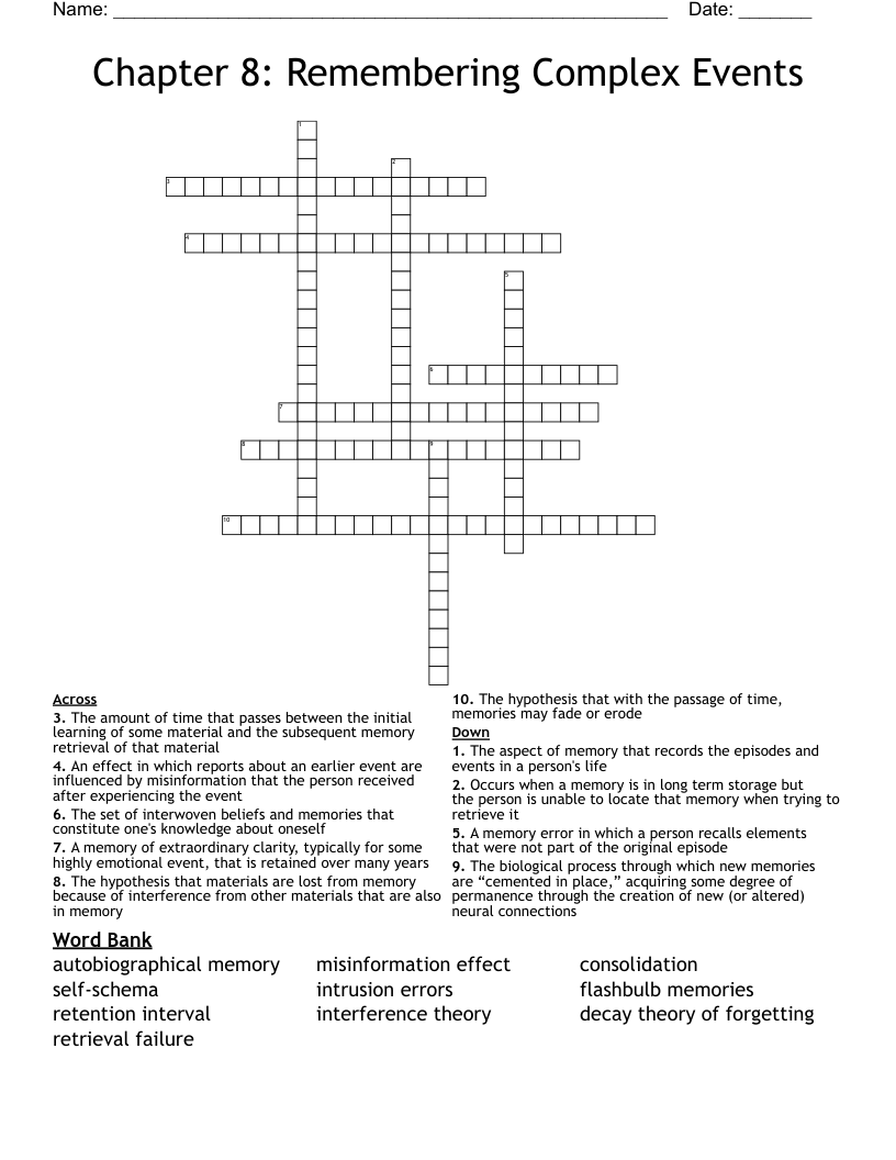 Chapter 8 Remembering Complex Events Crossword WordMint