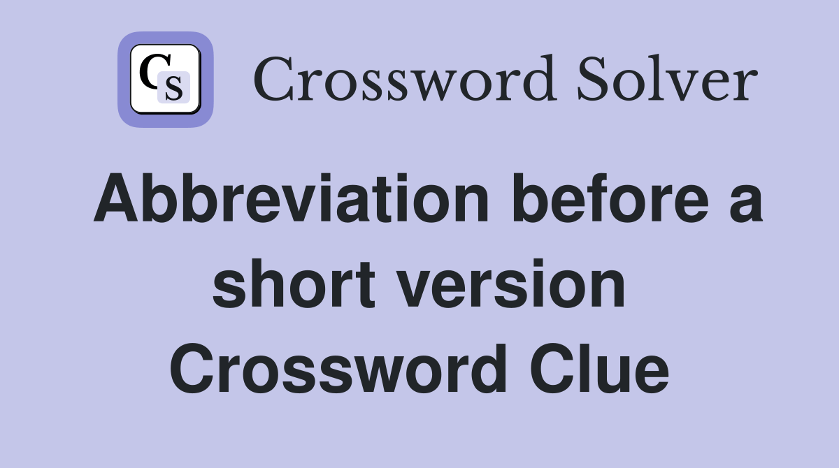 Abbreviation before a short version Crossword Clue Answers Crossword Solver