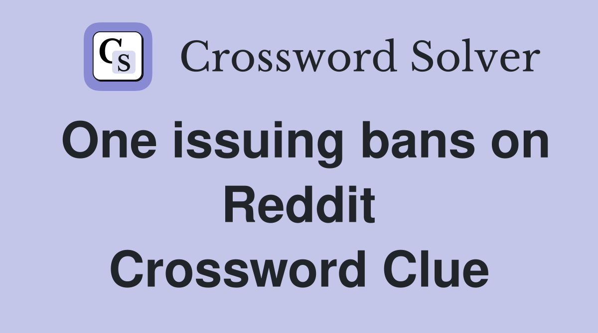 One issuing bans on Reddit Crossword Clue Answers Crossword Solver