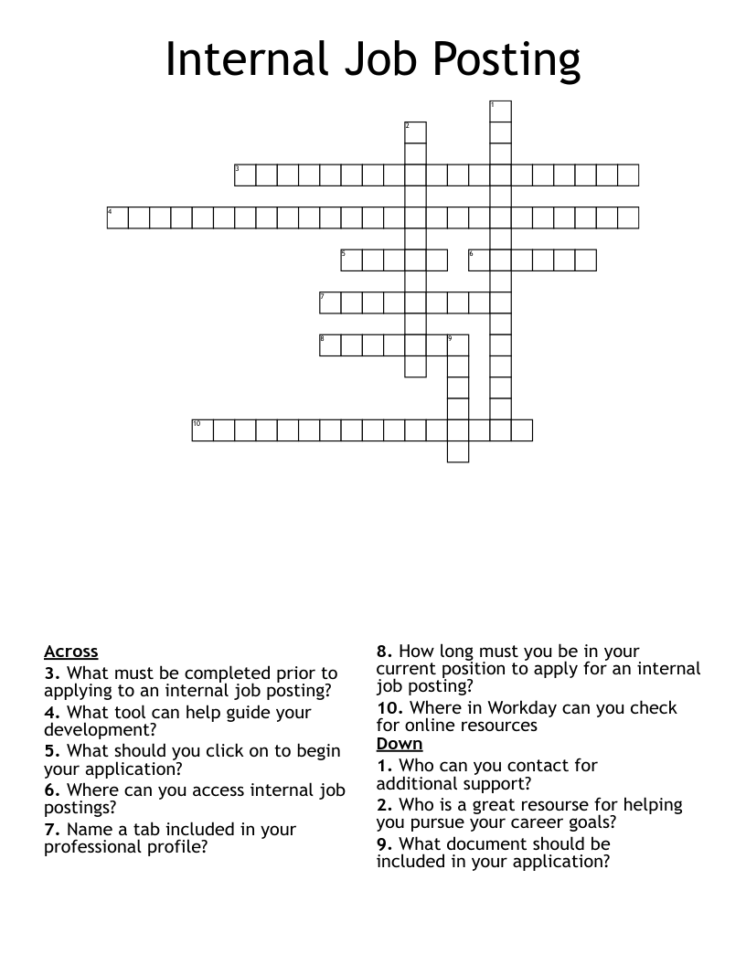 Crossword clue answers and solutions. The top solutions are determined by popularity, ratings and frequency of. Web the crossword solver found 30 answers to job posting initials, 3 letters crossword clue. There are related clues (shown below). The crossword solver finds answers.