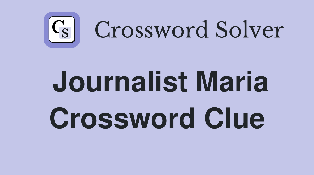 Web home > puzzles > daily commuter january 16, 2024 > journalist maria. Web the crossword solver found 30 answers to journalist maria, 5 letters crossword clue. We have found 40 possible. We will try to find the right answer to this particular crossword. Web now, let's get into the answer for journalist maria crossword clue most recently seen in.
