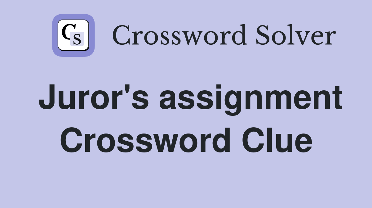 Juror's assignment Crossword Clue Answers Crossword Solver