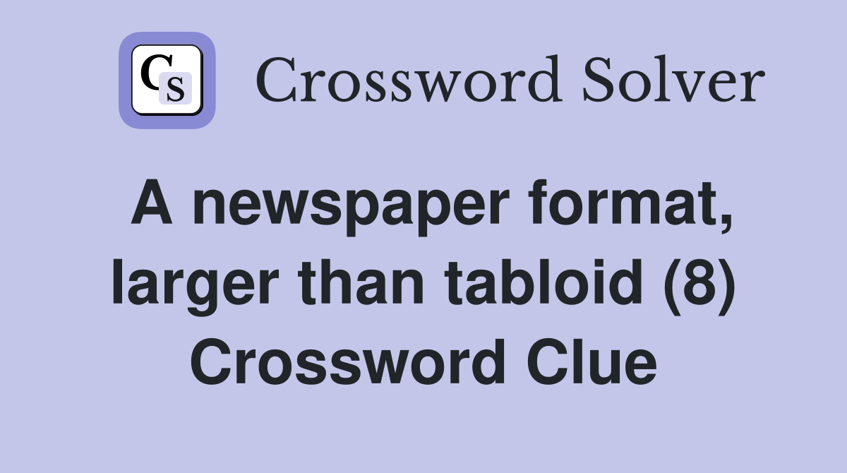 A newspaper format, larger than tabloid (8) Crossword Clue Answers Crossword Solver