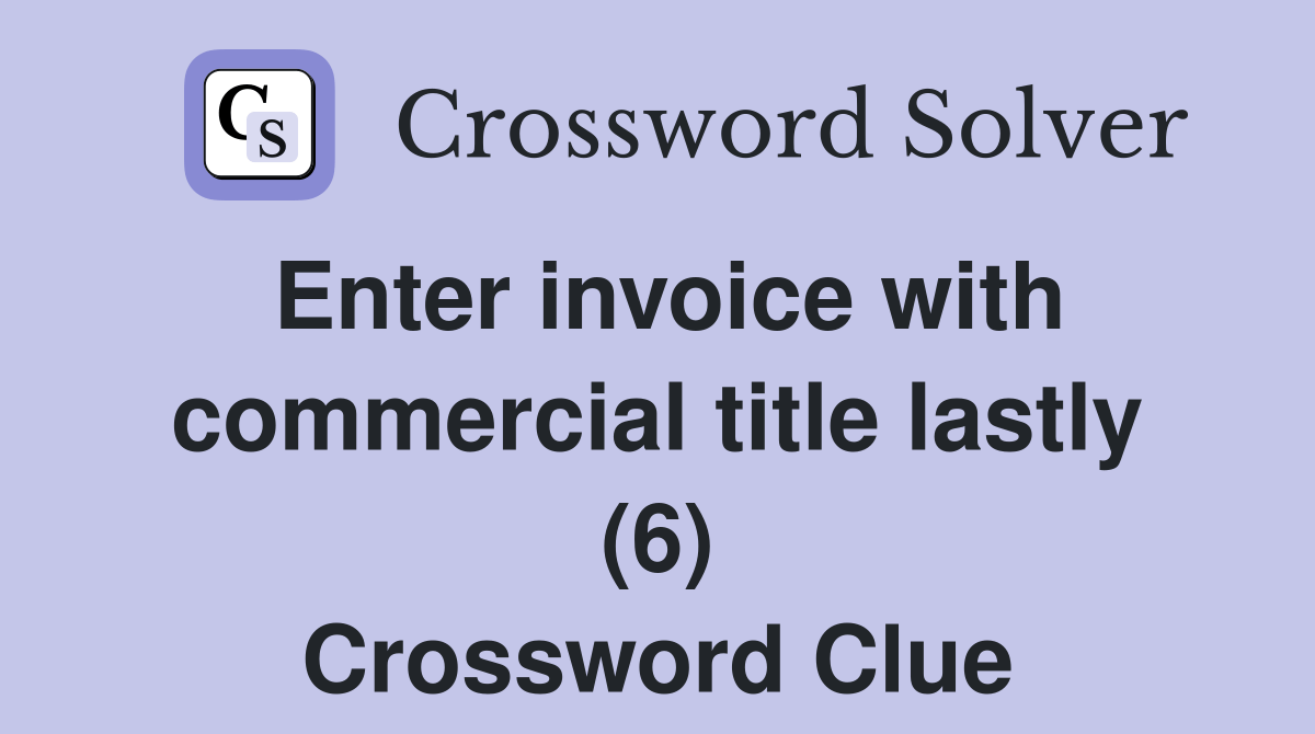Enter invoice with commercial title lastly (6) Crossword Clue Answers Crossword Solver