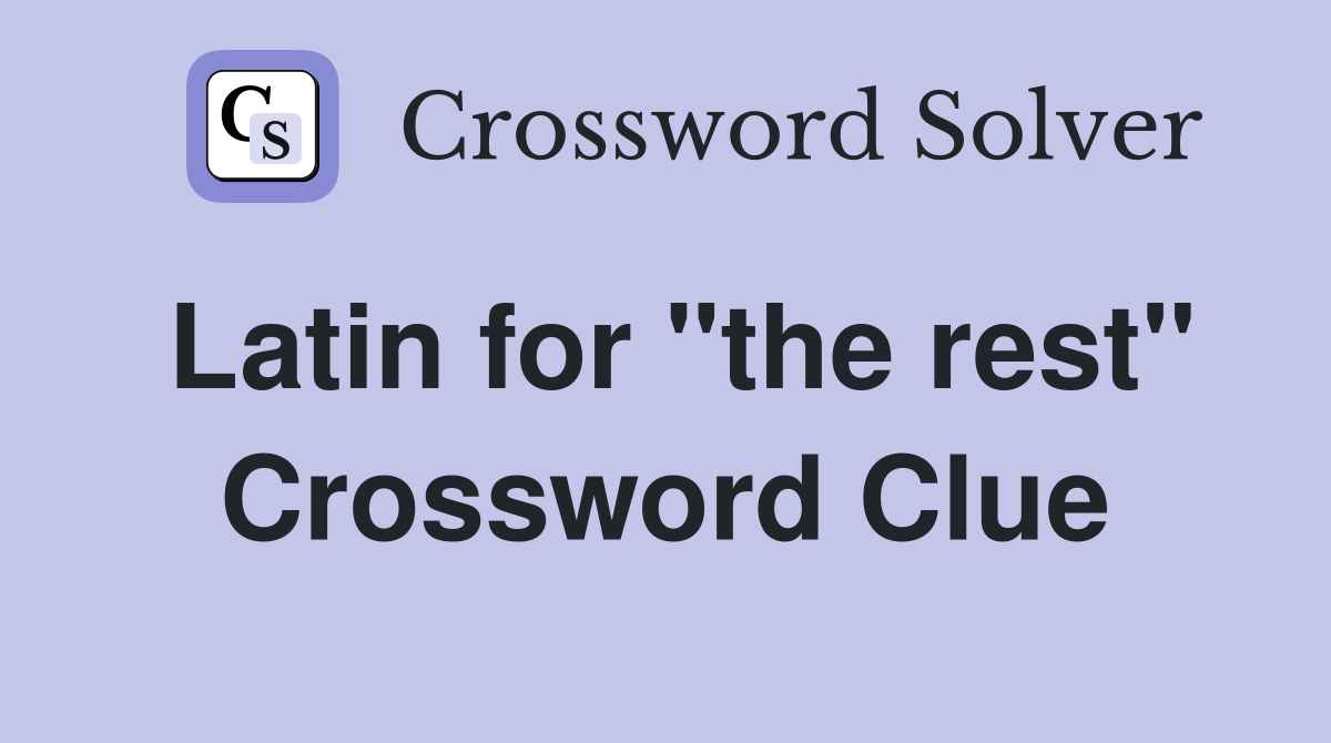 Latin for "the rest" Crossword Clue Answers Crossword Solver