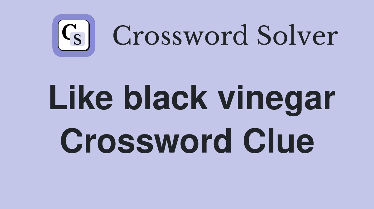 Like black vinegar crossword clue. On this page you will find like black vinegar la. We will try to find the right answer to this particular. Web here for you like black vinegar crossword clue la times answers.