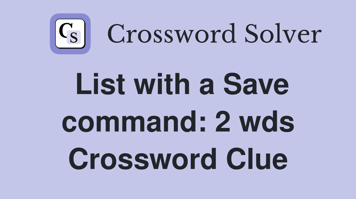 Web here is the answer for the crossword clue list with a save command: The top solutions are determined by popularity, ratings and frequency of. Web let's find possible answers to list with a save command crossword clue. 2 wds, 8 letters crossword clue.