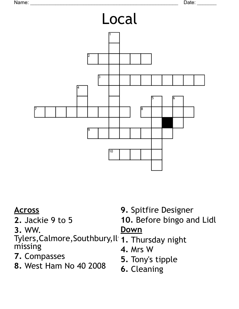 Local Crossword Clue - See the most searched for answer townie. We will try to find the right answer to this particular crossword clue. Also get synonyms for local, such as. Web today's crossword puzzle clue is a quick one: Web the crossword solver found 60 answers to local, 10 letters crossword clue. Web find 42 solutions for the crossword puzzle term local, ranging from 3 to 13 letters. Web find out the possible solutions for the clue local in crossword puzzles. Web here is the answer for the crossword clue locale featured in eugene sheffer puzzle on july 6, 2024. The crossword solver finds answers to classic. Here is the answer for the crossword clue local last seen in newsday puzzle.