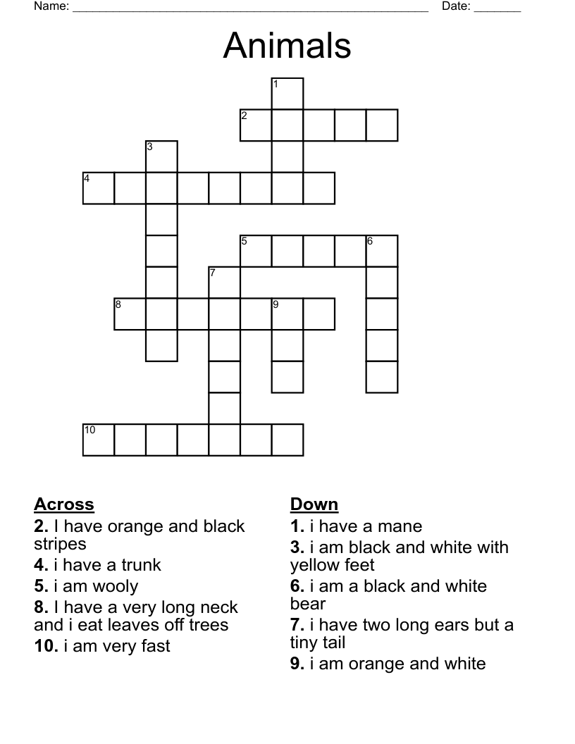 Kindergarten Crossword Animals Mr Greg's English Cloud