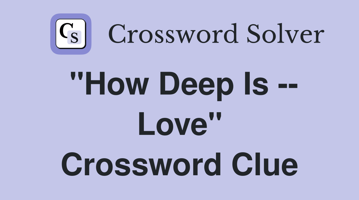 "How Deep Is Love" Crossword Clue Answers Crossword Solver