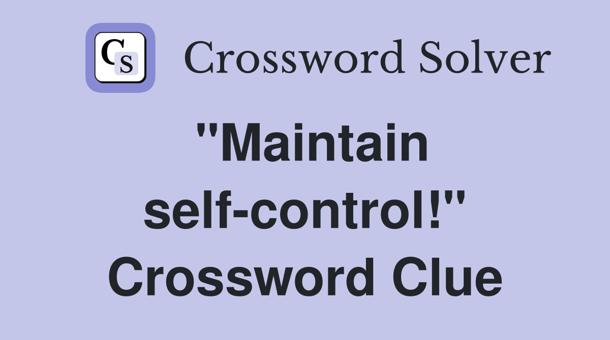 "Maintain selfcontrol!" Crossword Clue Answers Crossword Solver