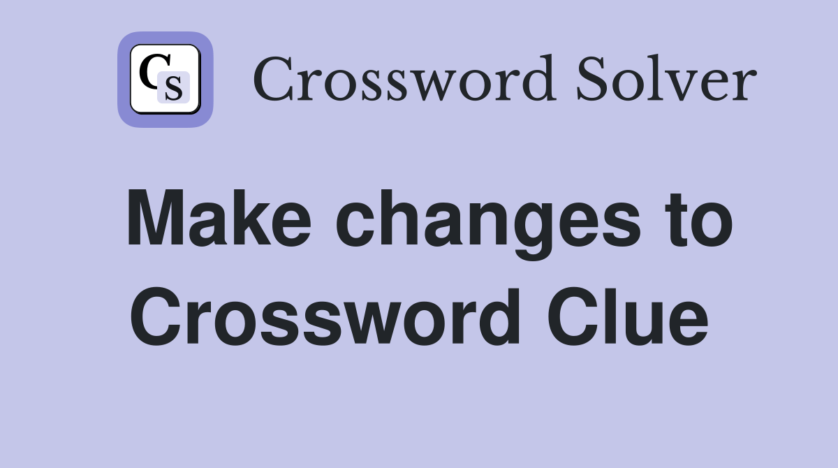 While searching our database we found 1 possible solution for the: The crossword solver finds answers to. Make changes to crossword clue. We have 6 answers for the clue make changes to.