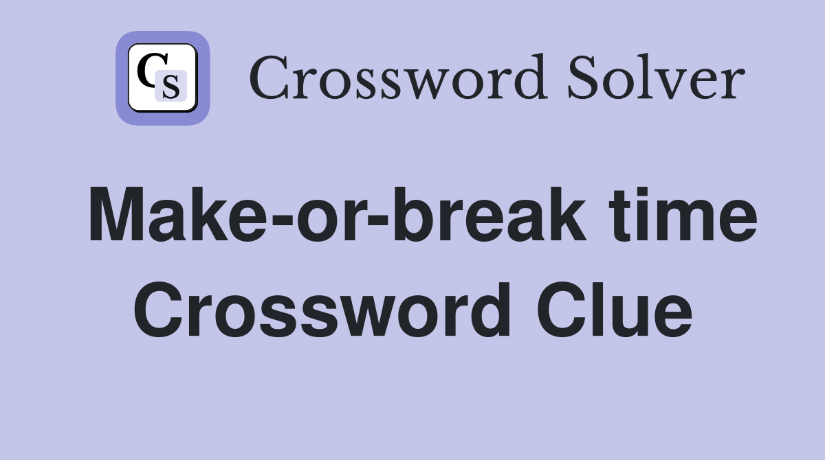 Among them, one solution stands out with a 95%. Web we have found 40 possible answers for this clue in our database. The crossword solver found 30 answers to make or break time, 4 letters crossword clue. Web make or break time crossword clue. The best answer we found was ddays , which has.