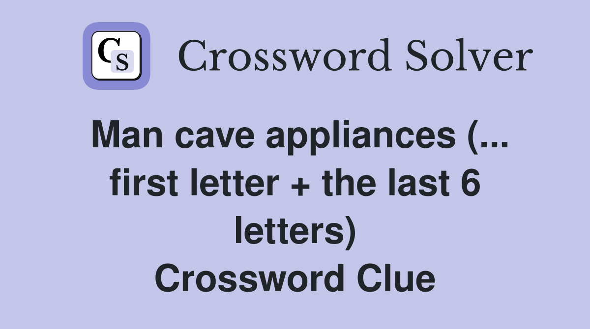 It was last seen in chicago. Web man cave appliances (… first letter + the last 6 letters) crossword clue answer is… answer: First letter + the last 6 letters) clue. Search for crossword clues found.