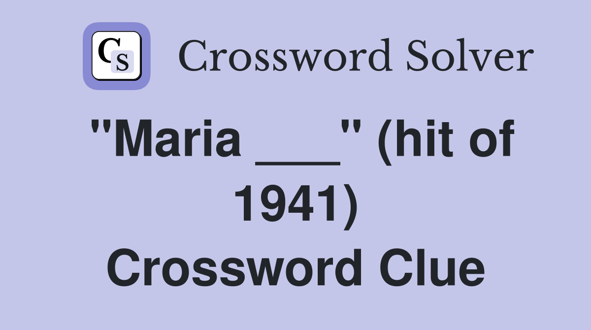 "Maria ___" (hit of 1941) Crossword Clue Answers Crossword Solver